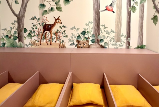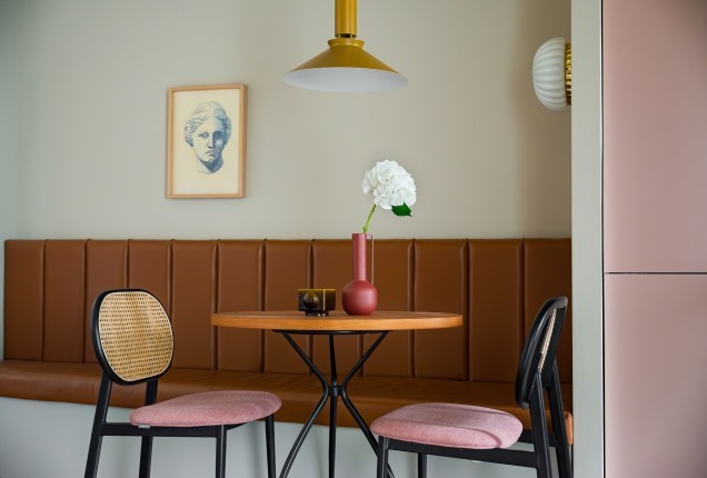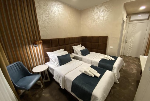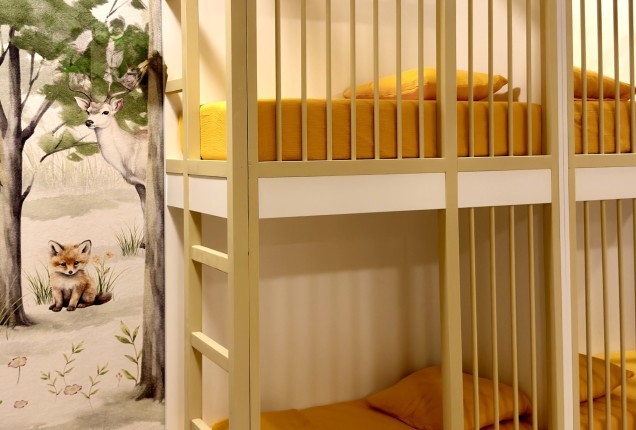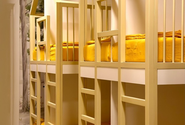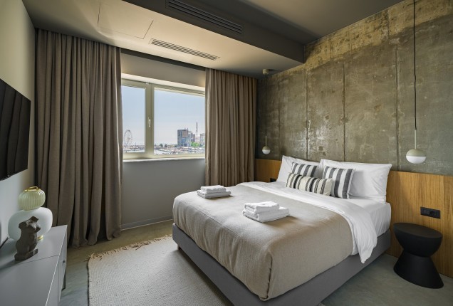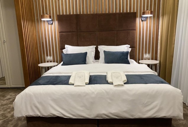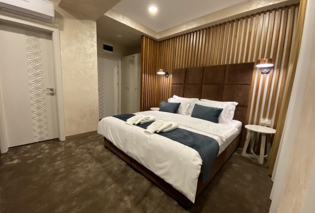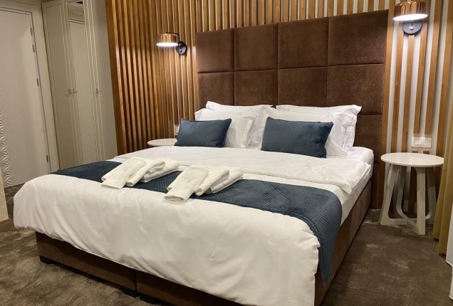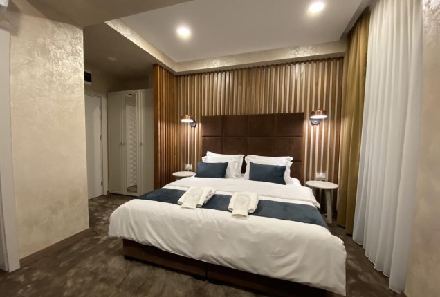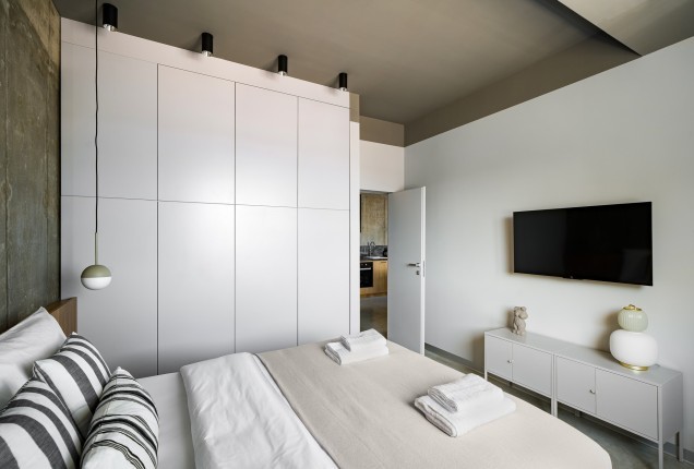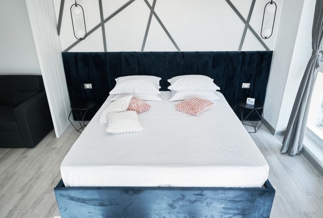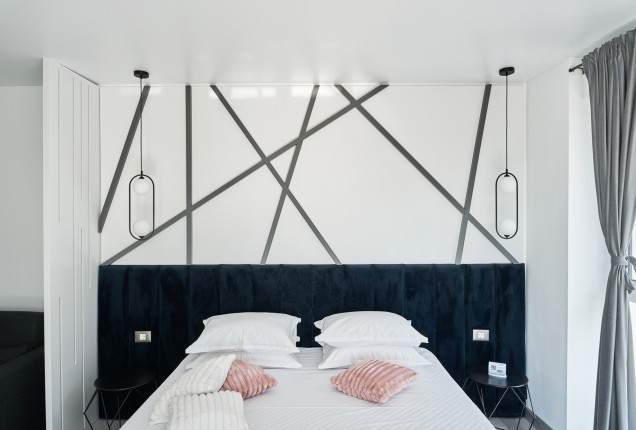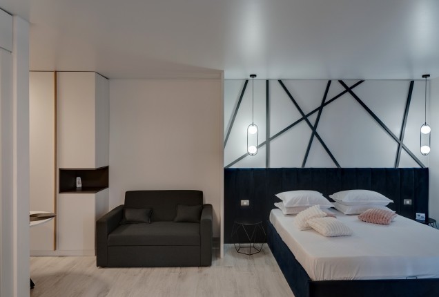 Amenjarea dormitorelor este sofisticata, dar in acelasi timp calda. Punctul principal din cele 2 dormitoare sunt paturile, in culori puternice burgund si olive, in timp ce accentele de auriu, pastreaza linia glamour pe care si-a dorit-o clientul.