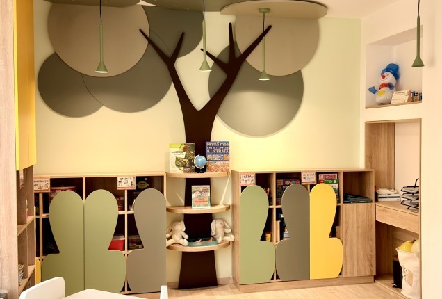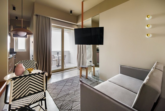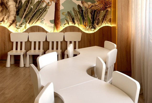 Livingul preia din cromatica bucatariei, cu placari de pereti superbe dn nuante de gri, riflaje din lemn sofisticate si cu accente de auriu, care capteaza lumina, sporind bogatia generala a incaperii. In zona de televizor, desi este compacta, am integrat un semineu electric pentru a crea o atmosfera si mai relaxanta.