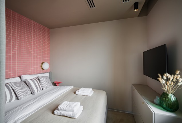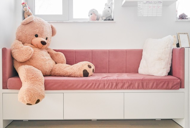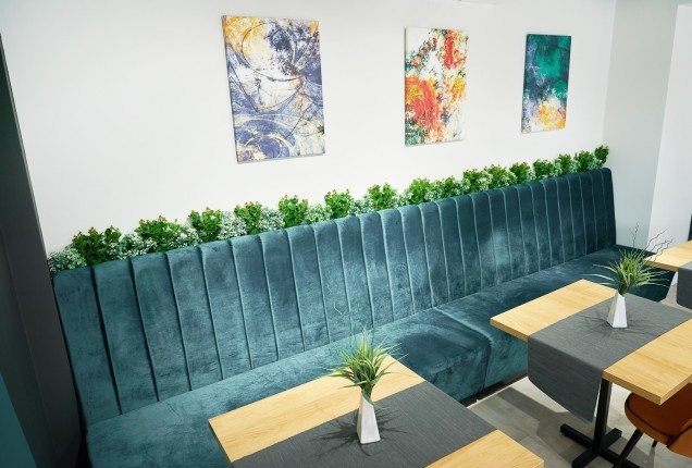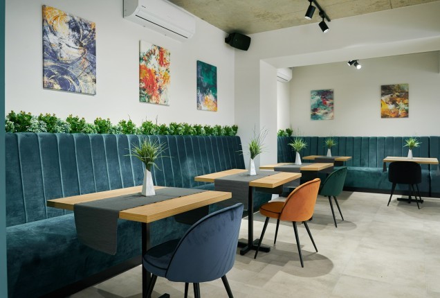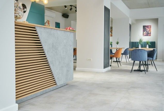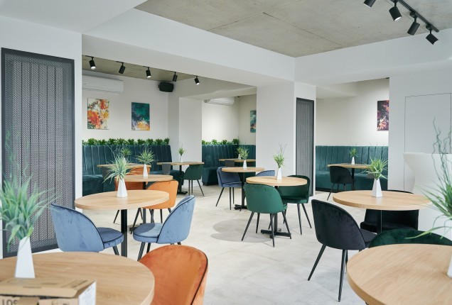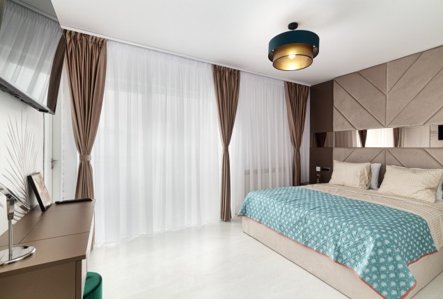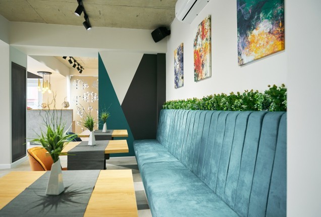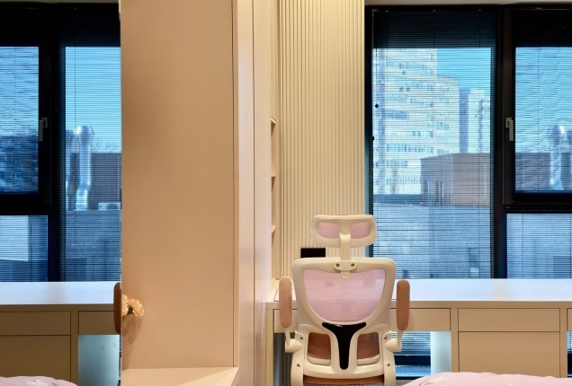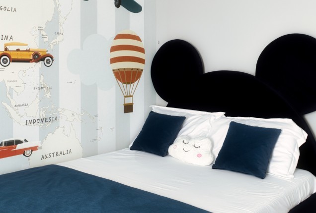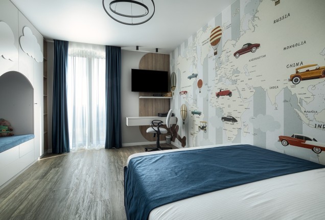 Paleta cromatică – tonuri calde de verde, galben și nuanțe naturale de lemn – creează un ambient echilibrat, care stimulează creativitatea fără a suprasolicita vizual. Formele rotunjite și elementele inspirate din natură, adaugă un plus de identitate și joc funcționalității zilnice. În camerele de odihnă, paturile tip căsuță, supraetajate, oferă nu doar eficiență în organizare, ci și un sentiment de siguranță și apartenență.