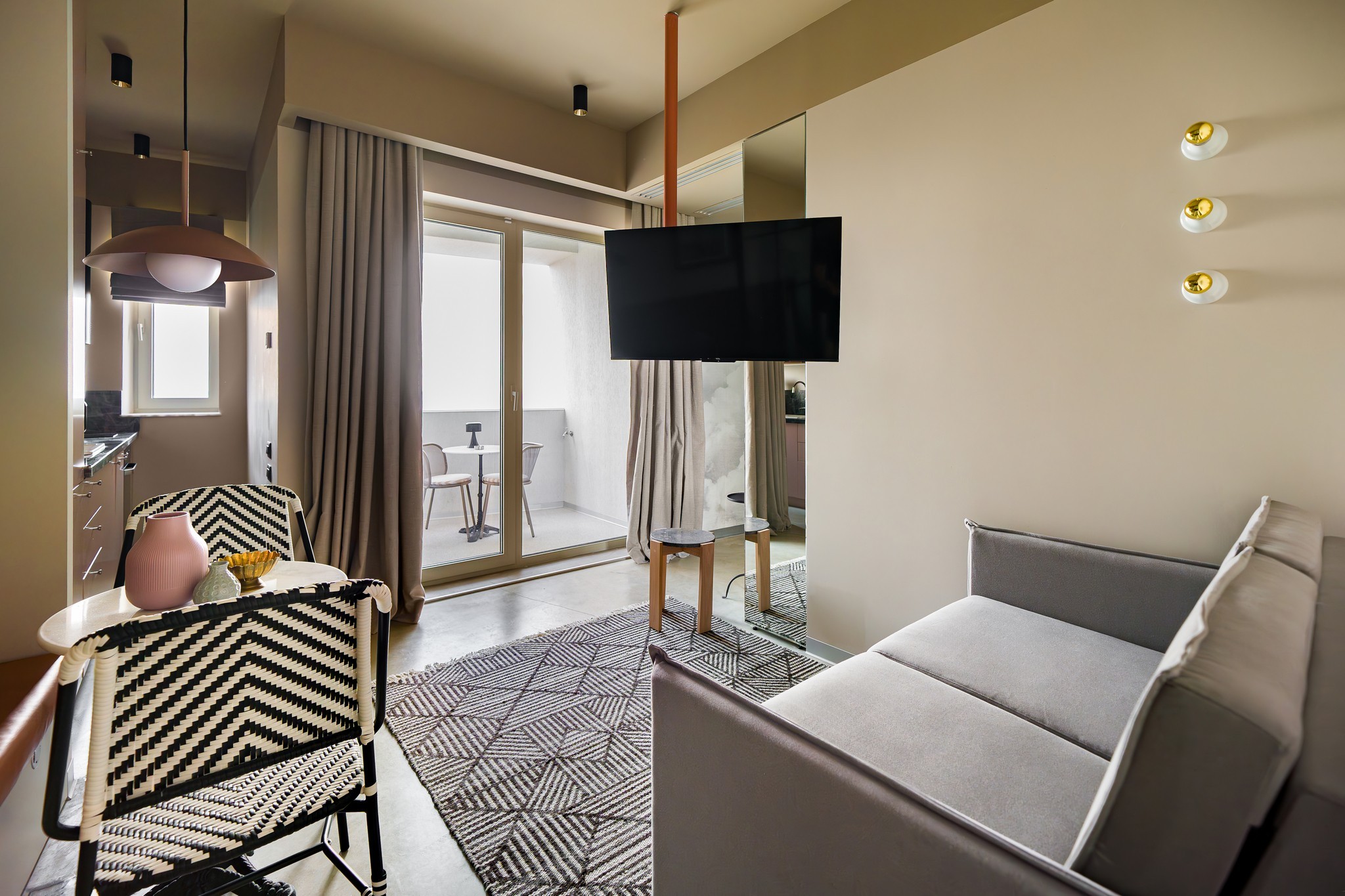 Zona de living emana eleganta, dar si caldura prin incorporarea semineului cu bioetanol. Utilizarea fronturilor din MDF vopsit , cu frezare Wave, vopsite metalizat, creeaza un placut joc de textura si culoare.