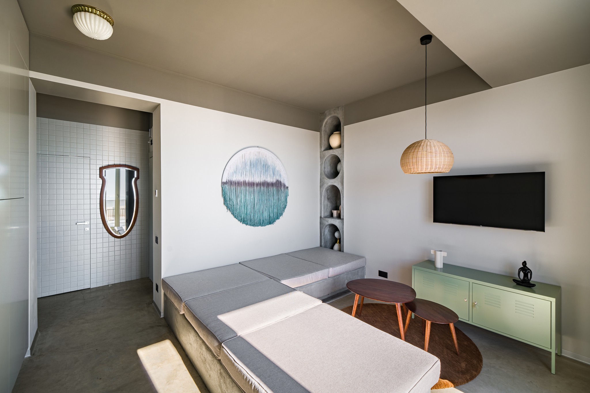 Piese de rezistenta din acest open space, este zona de sauna uscata, care ofera o oaza de relaxare in propria casa. Am plasat-o strategic in zona cu geamuri mari si lumini calde, transformand spatiul intr-un sanctuar de buna stare si liniste.