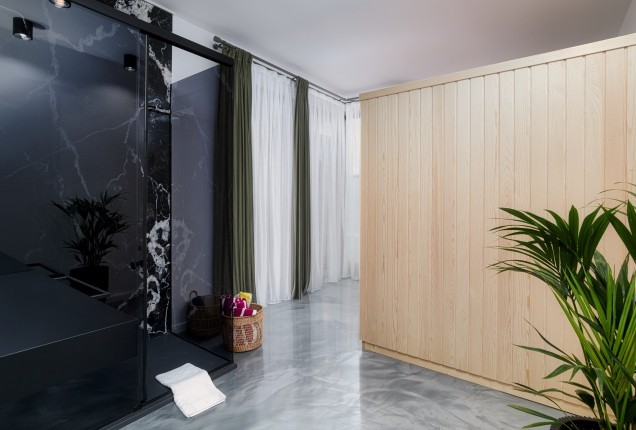 Piese de rezistenta din acest open space, este zona de sauna uscata, care ofera o oaza de relaxare in propria casa. Am plasat-o strategic in zona cu geamuri mari si lumini calde, transformand spatiul intr-un sanctuar de buna stare si liniste.