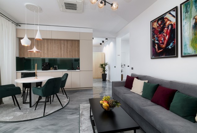 Conceptul de open space este accentual prin finisaje moderne si ferestre inalte pentru a oferi multa lumina naturala