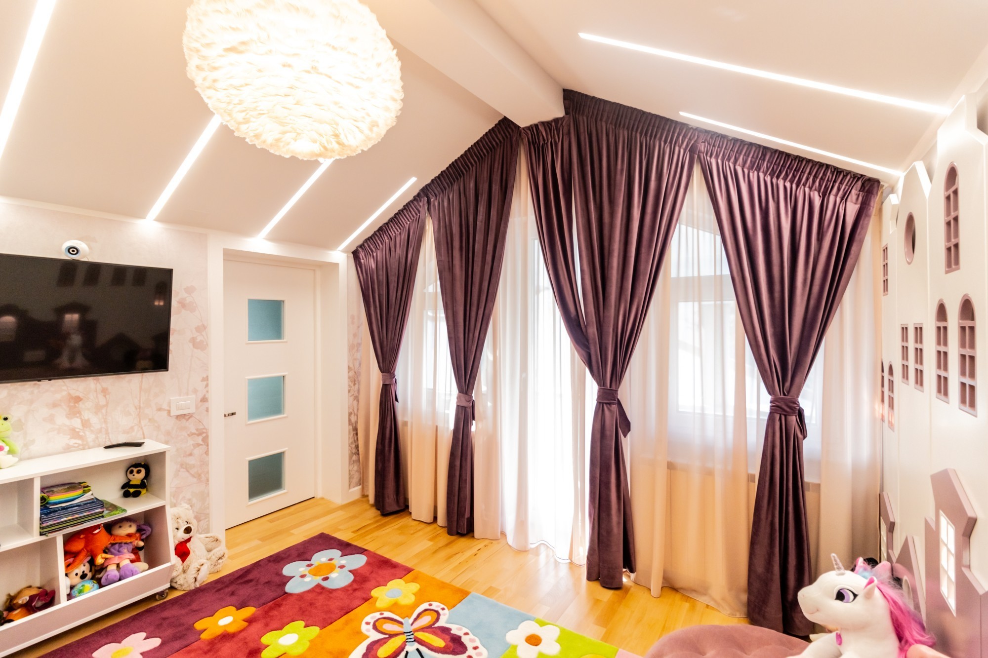 Acest proiect a fost conceput ca un univers al copilăriei, în care fiecare detaliu contribuie la bucuria, siguranța și dezvoltarea celor mici. Holurile devin adevărate trasee de explorare, animate de copaci decorativi, siluete jucăușe de animăluțe și accente luminoase create cu benzi LED integrate discret în mobilier.