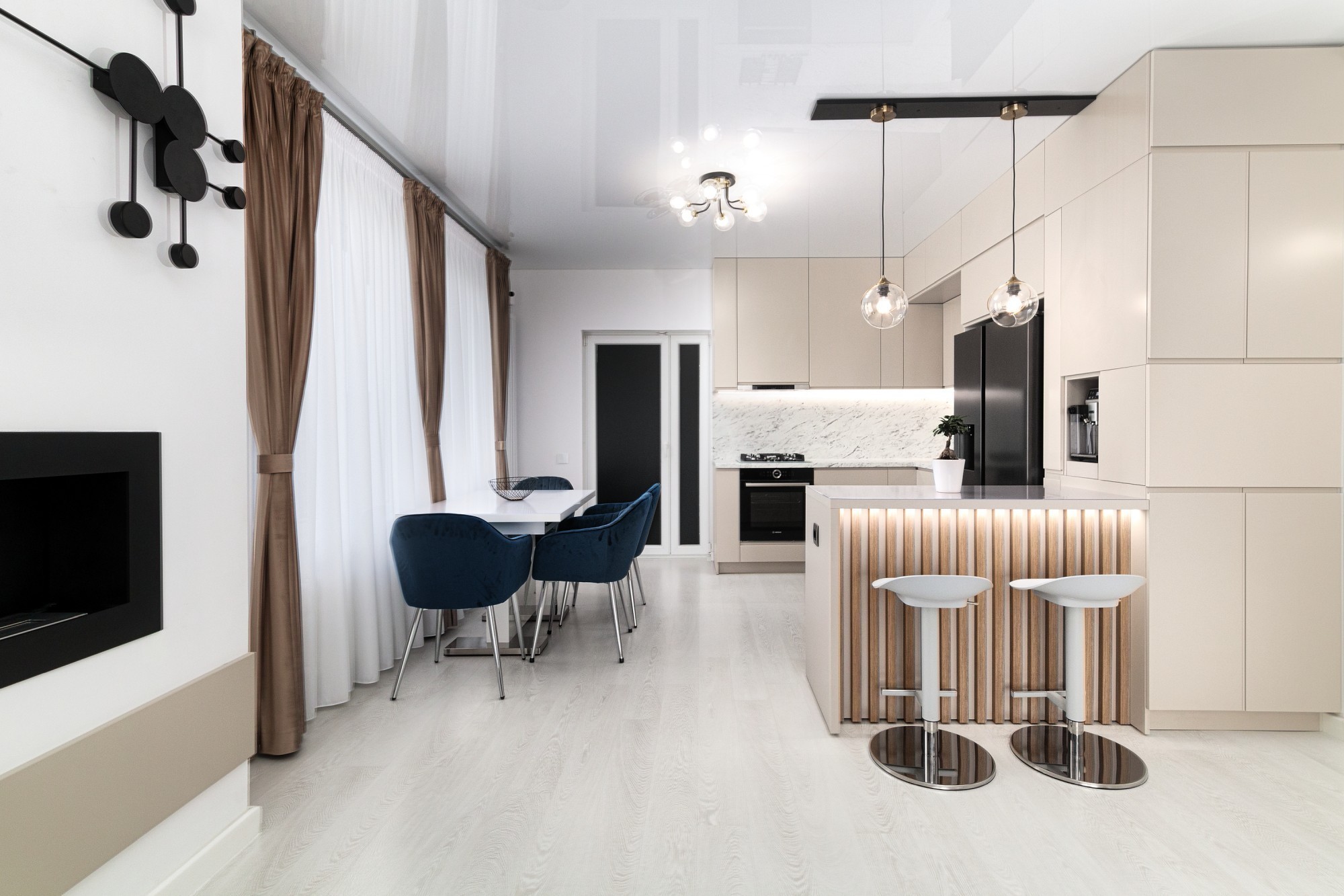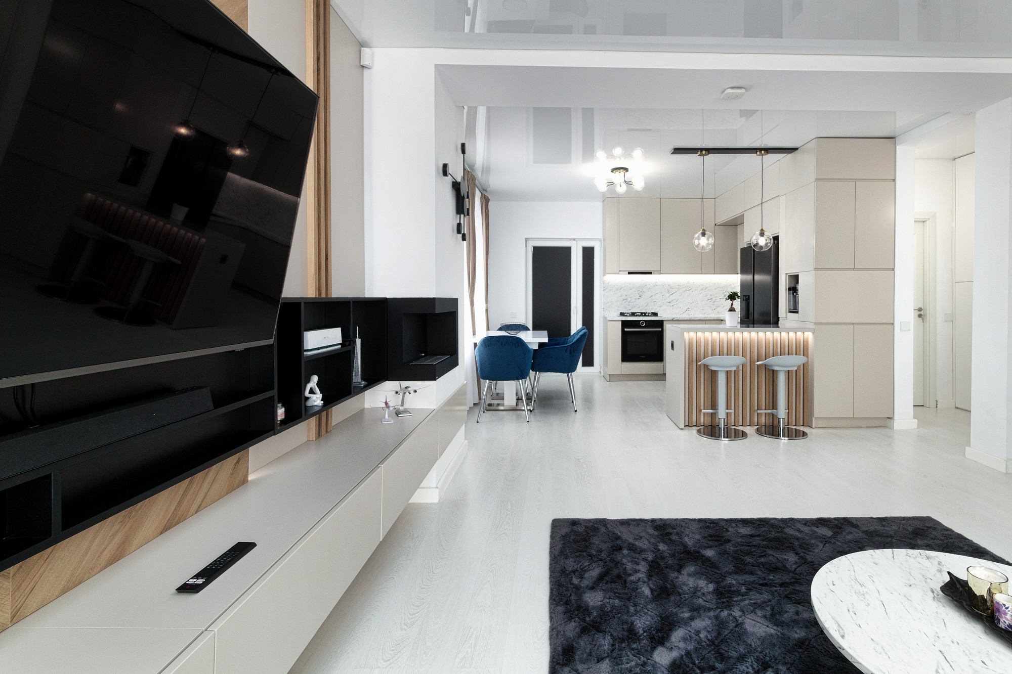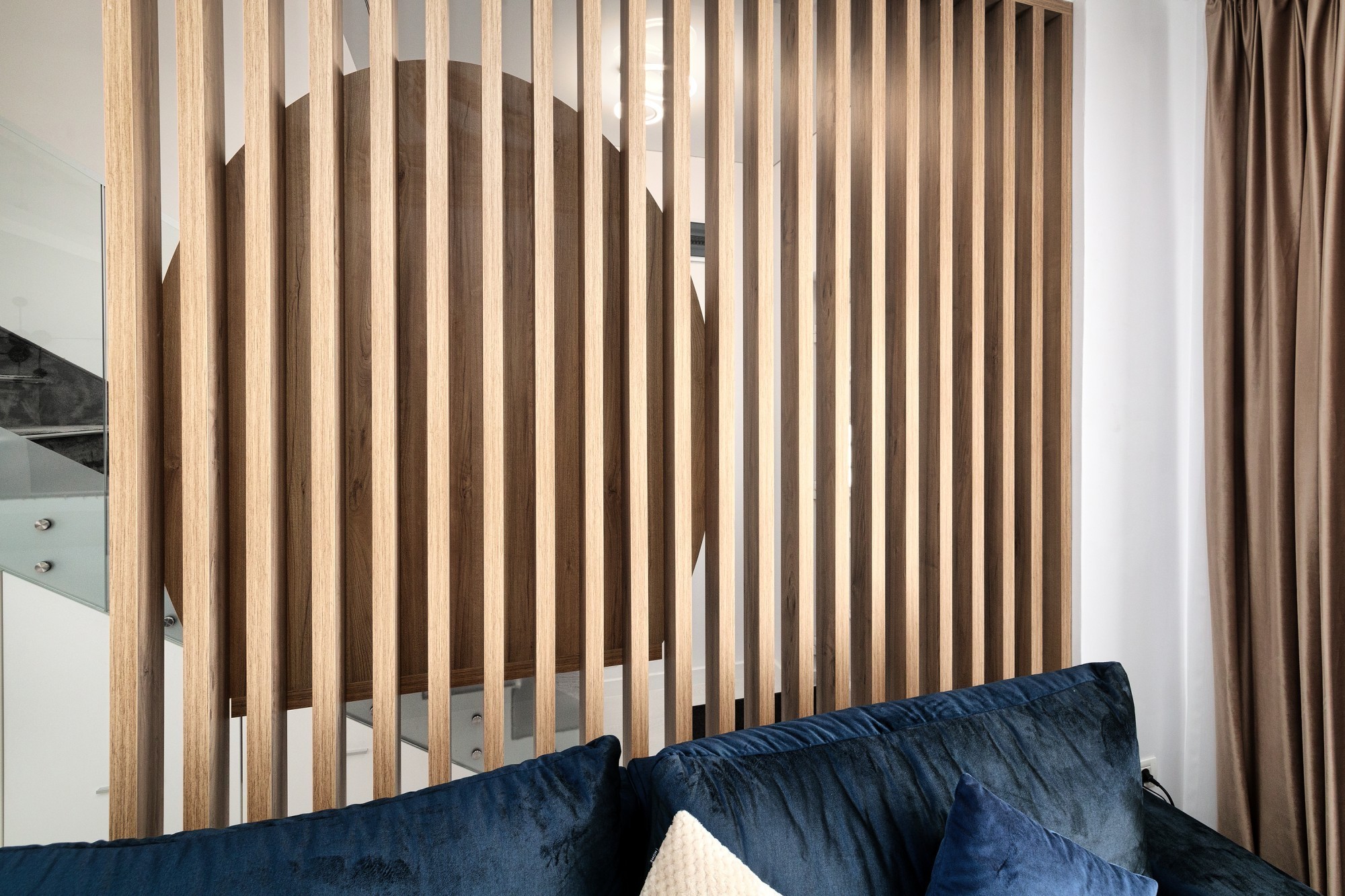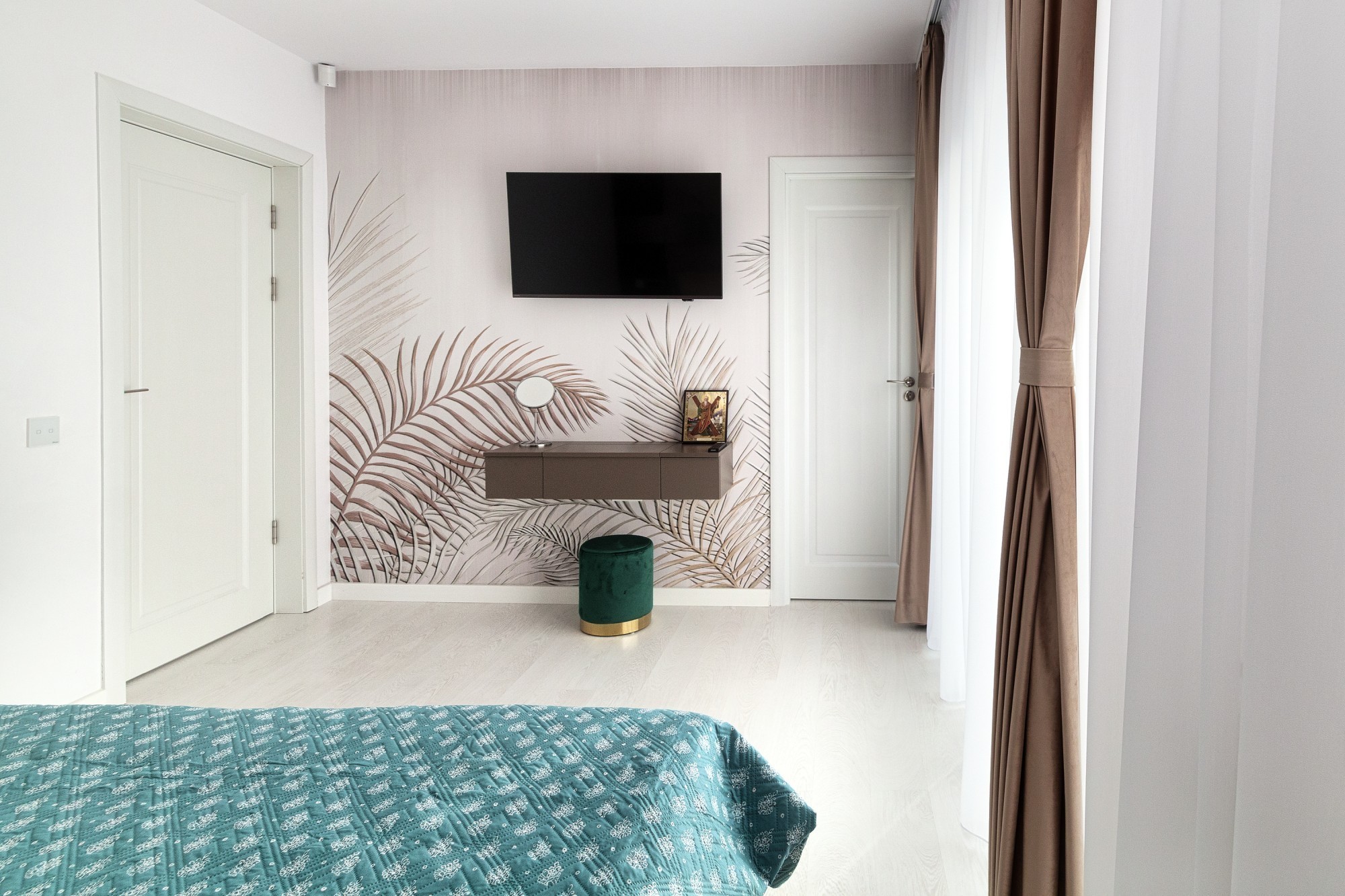 Rezultatul este un interior îndrăzneț și rafinat, în care eleganța clasică este reinterpretată contemporan. Spațiul devine aerisit, coerent și sofisticat — un ambient stilat, construit pentru confort și echilibru vizual.