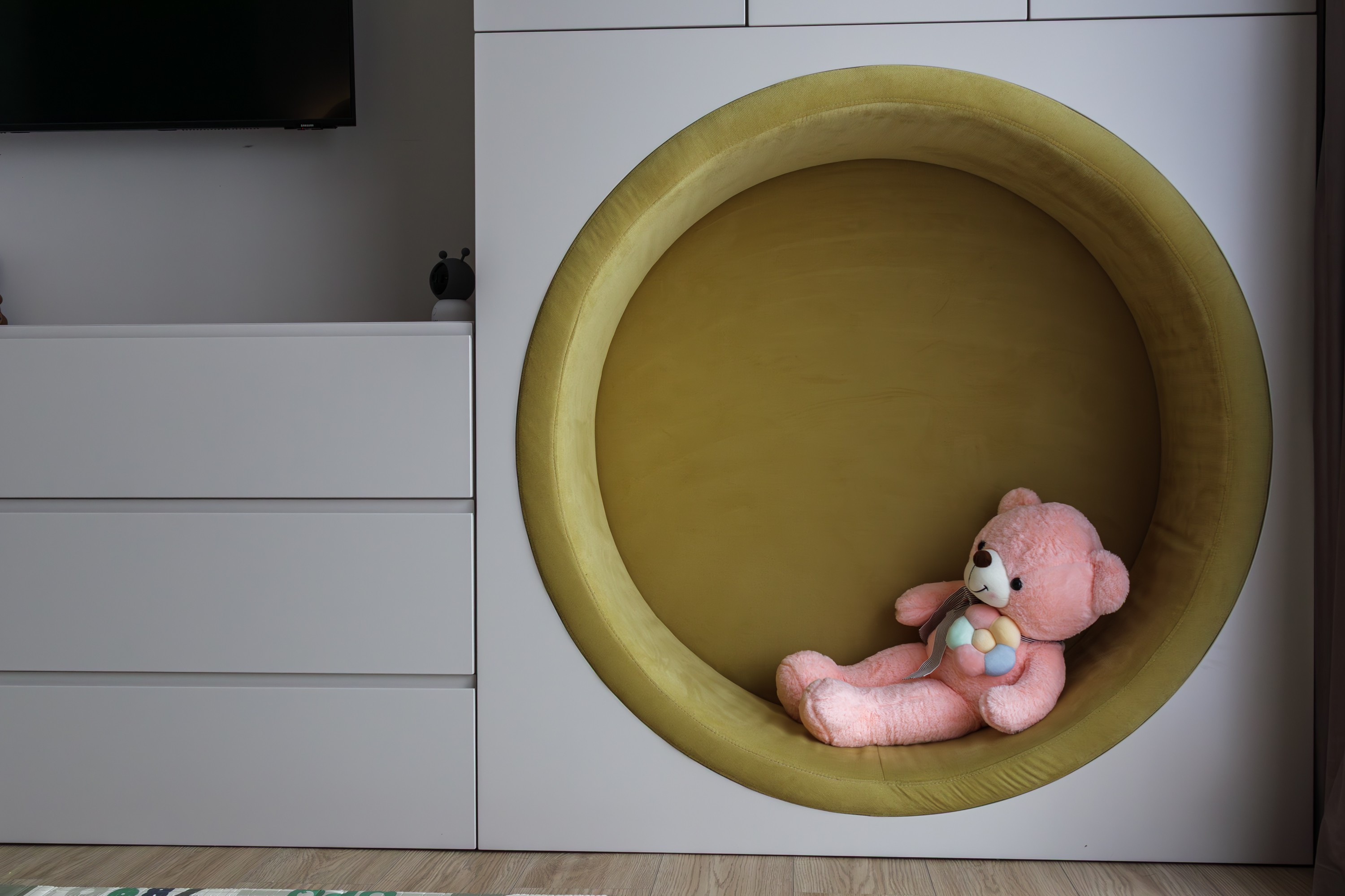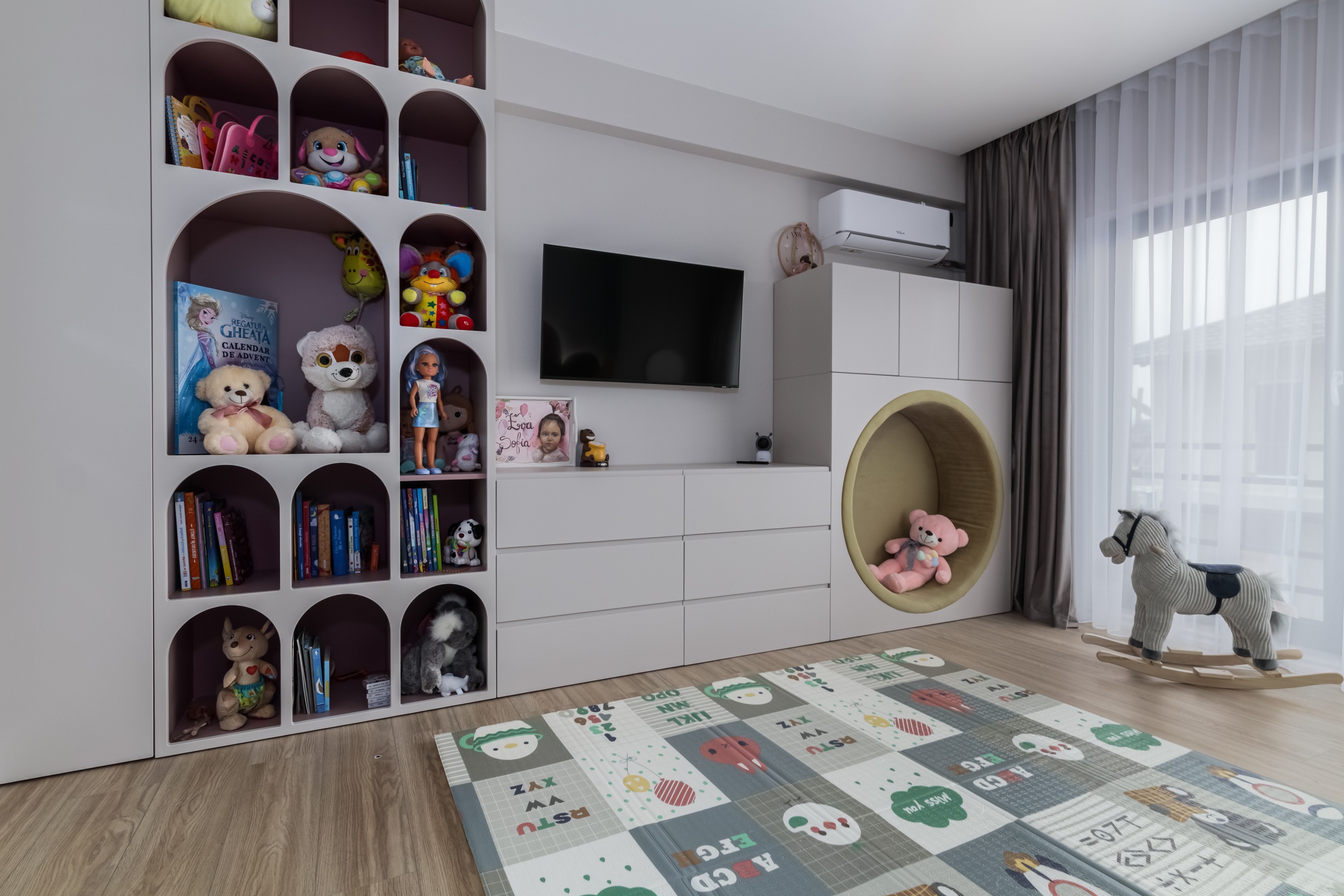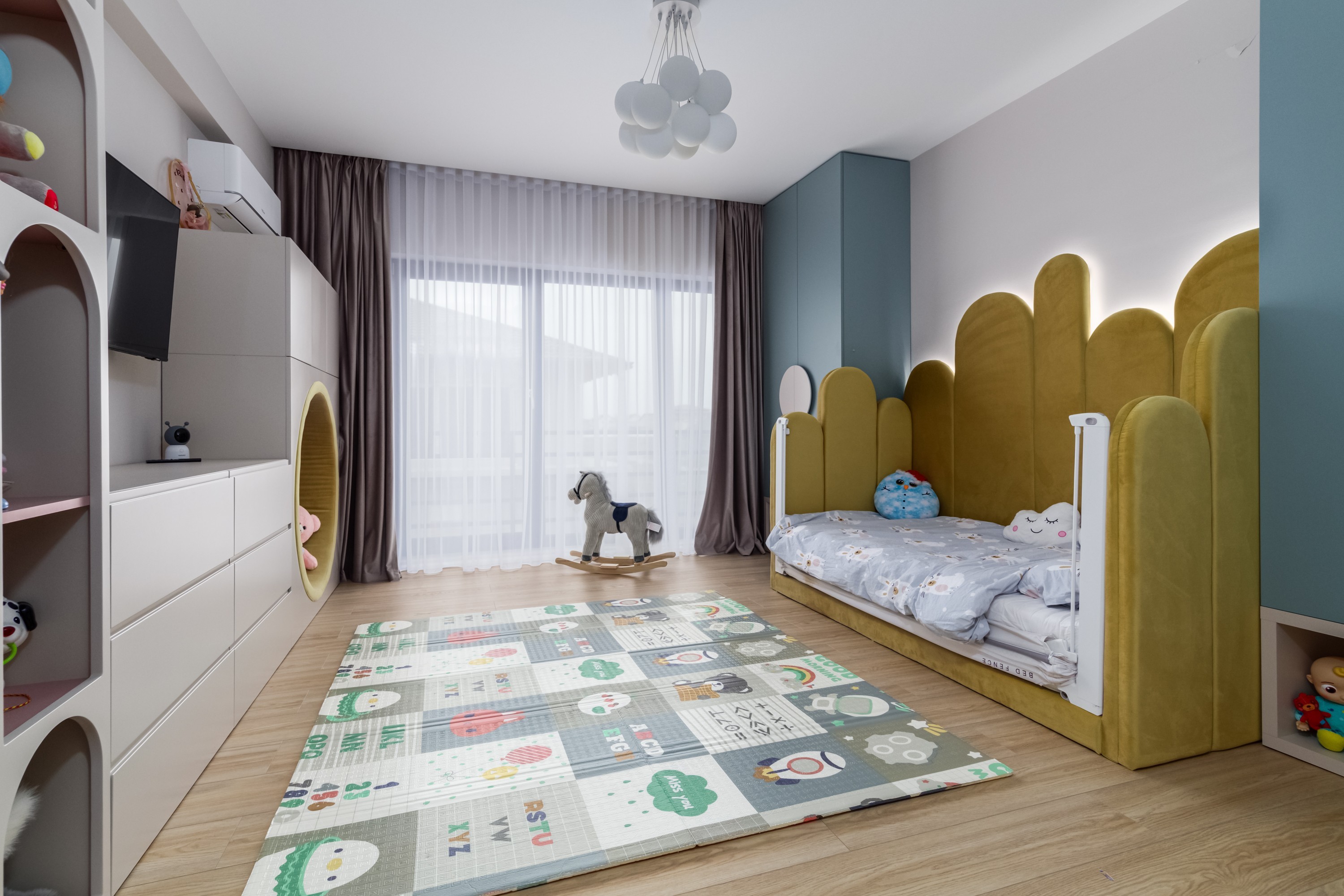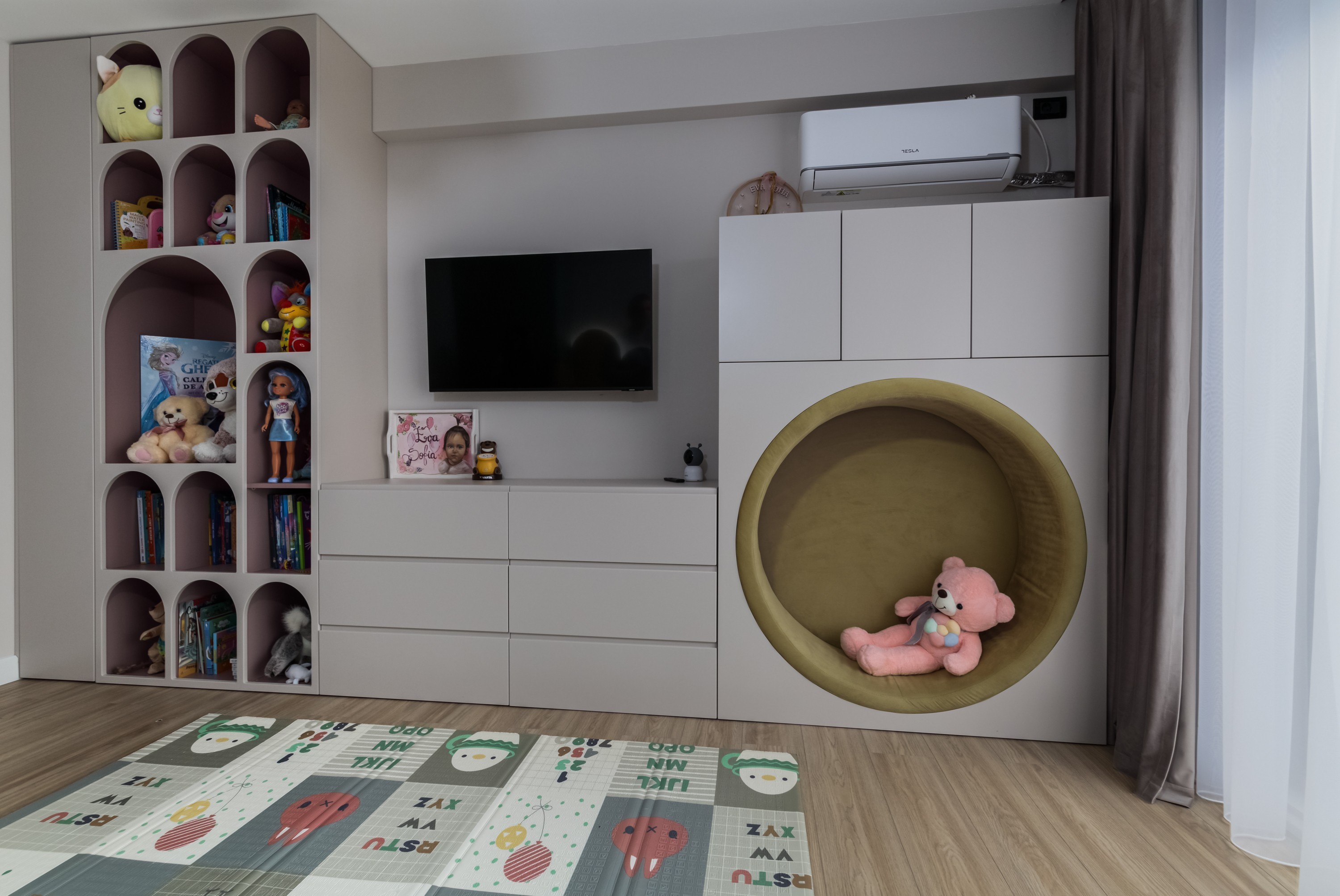 Acest dormitor a fost conceput ca un univers al descoperirii, adaptat personalității și ritmului unui copil aflat în plină explorare, un loc funcțional, dar și prietenos.